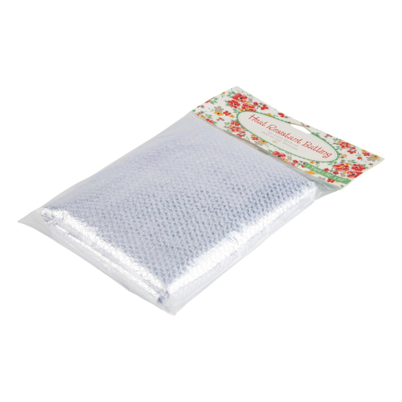 The Heat Resisting Batting by Lori Holt of Bee in my Bonnet is made of plated aluminum film and polyester and is heat resistant.