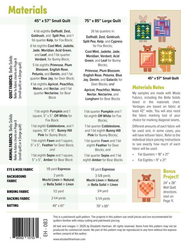 This patchwork quilt features foxes, bunnies, deer, and bears -- each holding up a different mini quilt.