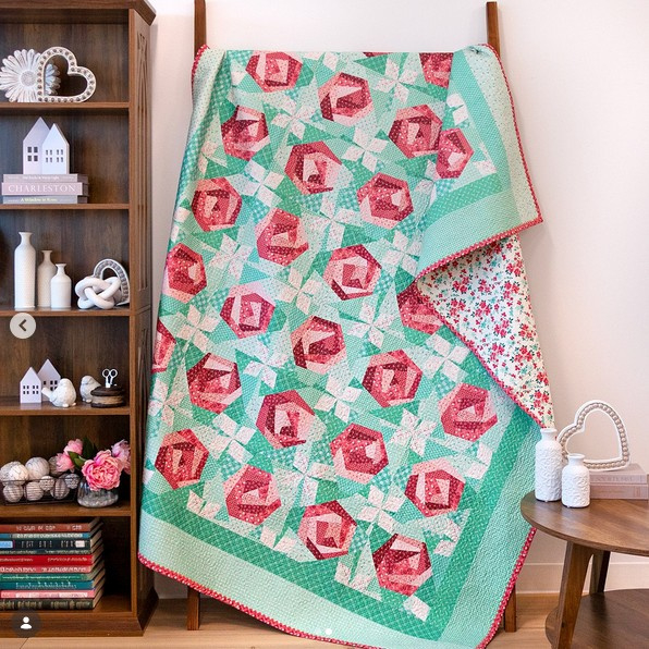 De foto's met de prachtige Paper Roses Quilt zijn gemaakt door It's Sew Emma