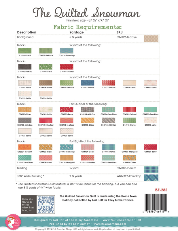 The Quilted Snowman Quilt pattern - By Lori Holt, Bee in my Bonnet